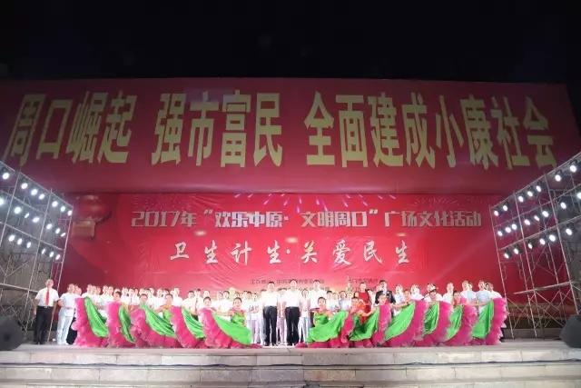 8月25日晚,由周口市委宣傳部、市文明辦、市文化廣電旅游局、市公安局共同主辦,市衛計委承辦的2017年“歡樂中原·文明周口”廣場文化活動暨“衛生計生,關愛民生”文藝晚會在五一文化廣場舉行。副市長張廣東,市委宣傳部副部長、文明辦主任劉淑君,市衛計委主任劉炯等出席活動,并與廣大市民一同觀看演出。