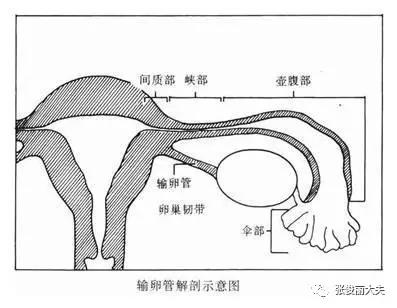 峽部:由子宮壁向外延伸的部分為峽部。峽部直而短,占據輸卵管內1/3段,約長2~3cm,輸卵管峽部管腔直徑最小0.9mm,最大達2mm。