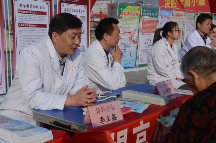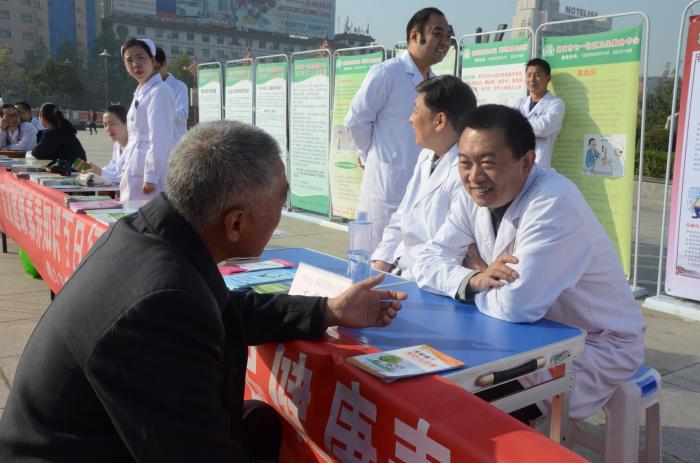 2017年11月2日上午,由市衛(wèi)計委組織的“創(chuàng)建省級衛(wèi)生城市,普及健康素養(yǎng)知識”暨“健康教育百日行”大型健康咨詢活動在五一廣場開展。周口市中醫(yī)院腎病、糖尿病科主任王秉新、骨病一病區(qū)主任李玉鑫等多位專家參加了此次活動。