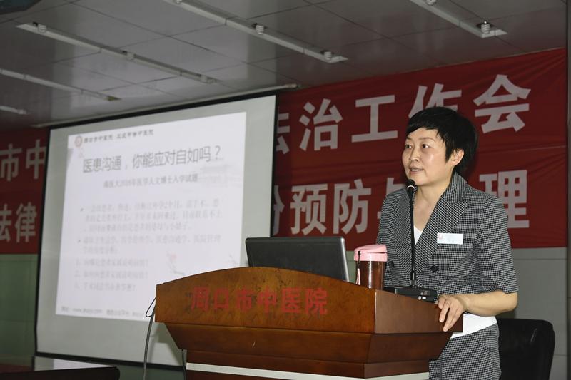 隨后,我院法制辦主任王予杰就最新法律視野下的醫(yī)療糾紛預(yù)防與處理作專題講座,從身邊發(fā)生案例分析醫(yī)療糾紛發(fā)生的原因,并結(jié)合多年來的工作經(jīng)歷,對如何防范和處理醫(yī)療糾紛、如何進(jìn)行良好的溝通、如何營造醫(yī)患和諧的環(huán)境,并對實(shí)踐中常碰到的、容易引起醫(yī)患矛盾的問題提出了針對性的見解。從門診誤判、用藥出錯(cuò)、醫(yī)療意外、操作不慎、手術(shù)并發(fā)癥等五個(gè)方面詳細(xì)講解了醫(yī)患糾紛的突出表現(xiàn)。從醫(yī)方因素、患方因素、社會因素等方面深刻詳細(xì)剖析醫(yī)療糾紛產(chǎn)生的原因。最后分別從強(qiáng)化“以人為本”的服務(wù)理念、鍛煉“救死扶傷”的過硬本領(lǐng)、弘揚(yáng)“醫(yī)德醫(yī)風(fēng)”的優(yōu)良傳統(tǒng)、完善“糾紛化解”的工作程序、營造“防紛止鬧”的社會氛圍等五個(gè)方面內(nèi)容提出了醫(yī)患糾紛防范建議。