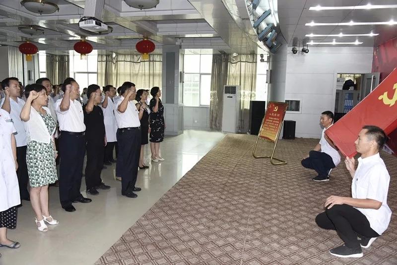 “我志愿加入中國共產(chǎn)黨,擁護黨的綱領(lǐng),遵守黨的章程,履行黨員義務,執(zhí)行黨的決定,嚴守黨的紀律,保守黨的秘密,對黨忠誠,積極工作,為共產(chǎn)主義奮斗終身,隨時準備為黨和人民犧牲一切,永不叛黨?!?/span>面對黨旗,劉廣明領(lǐng)誓,全體黨員舉起右手莊嚴宣誓,聲音洪亮、激昂,鏗鏘有力的誓詞傳達著不忘跟黨初心,牢記使命的決心和信念。