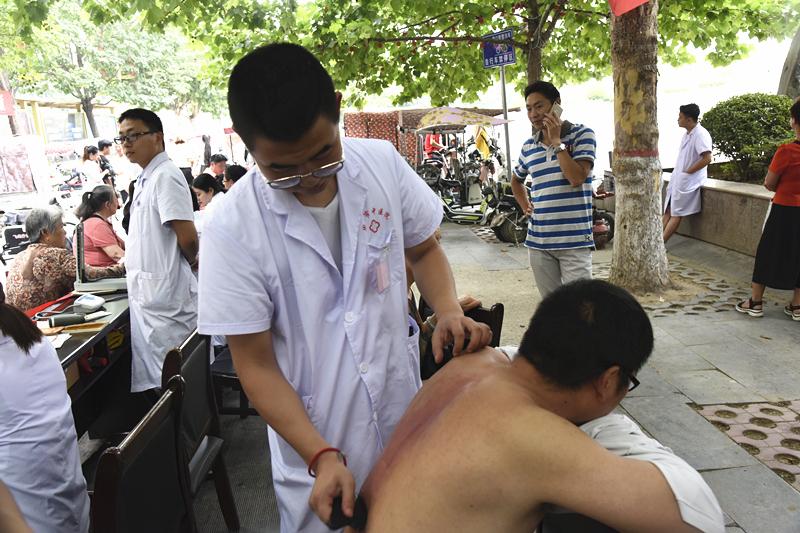 活動現場,市中醫院康復中心、治未病科、制劑中心的醫務人員為市民群眾開展了健康咨詢、免費血糖血壓檢查、中醫特色刮痧、拔罐、艾炙、體質辨識等義診服務。通過專家義診、中醫藥互動體驗、擺放宣傳展板、發放《中醫藥法》單行本及中醫藥健康宣教資料、展示醫院自制藥劑等多種方式,宣傳《中華人民共和國中醫藥法》,普及中醫藥知識、養生保健理念和方法,引導居民自覺養成健康生活方式和行為方式,逐步提高居民中醫藥健康文化素養。使廣大人民群眾了解中醫、認識中醫、愛上中醫,讓中醫藥惠及千家萬戶,為周口大眾健康保駕護航。