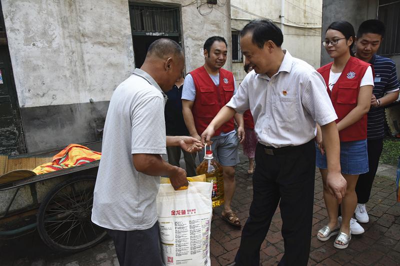 在八一建軍節(jié)來臨之際,為深入學(xué)習(xí)貫徹黨的十九大精神,充分發(fā)揮文明單位的示范帶動(dòng)作用,7月31日上午,周口市中醫(yī)院黨委委員、工會(huì)主席孫俊帶隊(duì),宣傳科科長黎倩平、社區(qū)主任郁燕一行10人來到荷花辦事處前王莊社區(qū),走訪慰問退伍軍人,并送去了慰問品和節(jié)日的祝福。