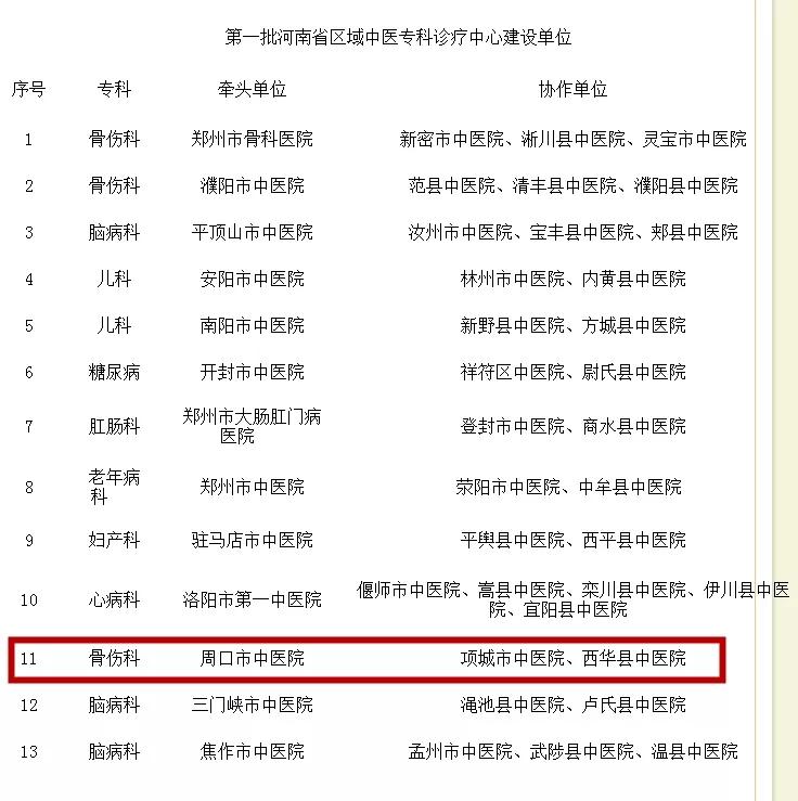 日前,根據《河南省區域中醫專科診療中心建設實施方案》和《河南省中醫管理局關于開展第一批省級區域中醫專科診療中心申報工作的通知》要求,經各省轄市推薦、省中管局形式審查、專家評審、局務會審議,結合區域規劃,確定了第一批河南省區域中醫專科診療中心建設項目名單。周口市中醫院骨傷科成功入選河南省區域中醫專科診療中心建設項目。