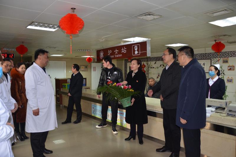 2019年2月1日上午,周口市政府副市長張廣東、市政府副秘書長劉濤、市衛建委主任金玉貞在市中醫院院長陪同下對市中醫院工作在臨床一線的醫護人員進行新年慰問。