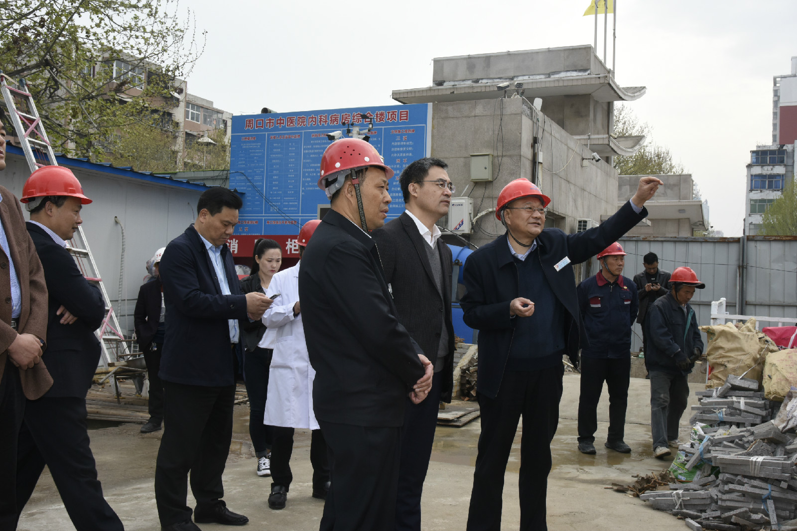 4月2日上午,周口市副市長秦勝軍,市政府副秘書長唐峰調研市中醫院內科綜合樓項目建設工作,市中醫院黨委書記劉廣明,副院長史衛東、工會主席孫俊陪同調研。