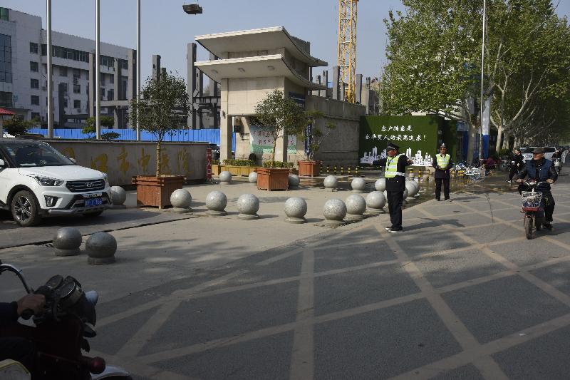 保衛科工作人員在醫院門前進行交通疏導