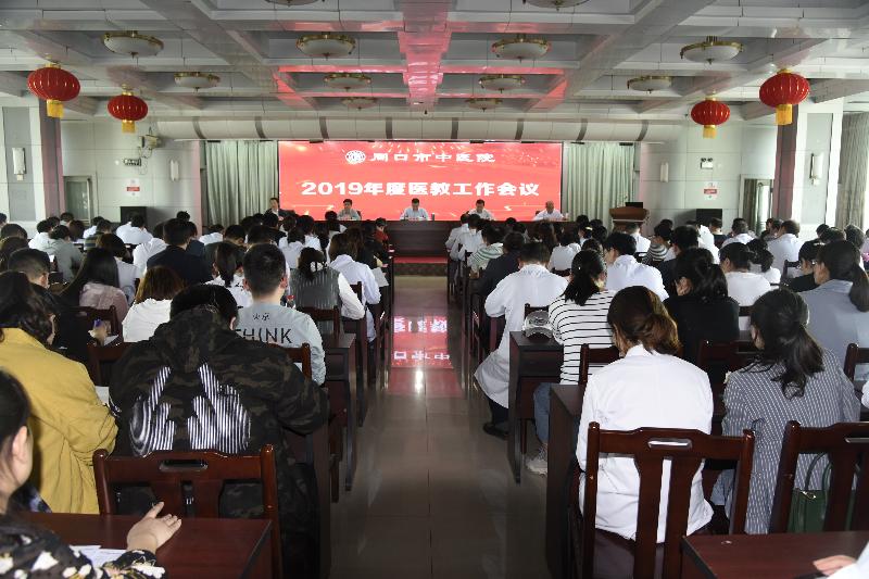 2019年4月18日下午,周口市中醫院2019年度醫教工作會在六樓會議室召開。市中醫院黨委書記劉廣明主持會議。副院長史衛東和醫教科長胡維來、質管辦主任趙傳印及全體醫生200多人參加了會議。