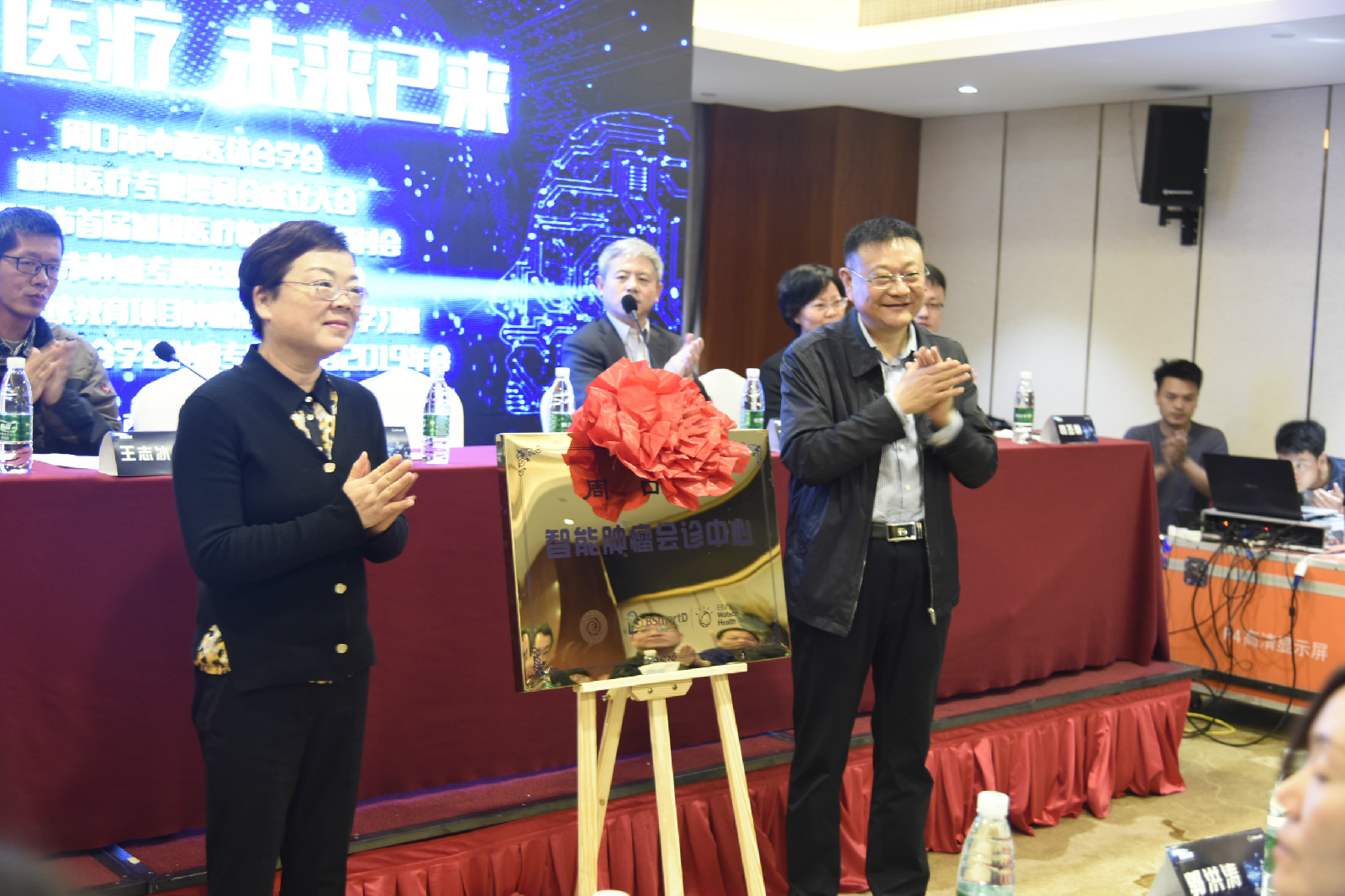2019年4月21日,周口市中西醫結合智慧醫療專業委員會成立暨“周口市首屆智慧醫療臨床實踐研討會” 、“周口市中醫院智能腫瘤會診中心揭牌儀式”、 “周口市腫瘤專科聯盟2019年會”在天明錦江國際酒店召開,來自全市從事腫瘤、骨科、婦產科、影像專業近200名醫務人員參會。市衛健委副主任張焱、市中醫管理辦公室副主任王志冰等領導出席本次會議。周口市中醫院副院長史衛東當選為智慧專業委員會第一屆主任委員。大會由市中西醫結合學會秘書長、市中醫院工會主席孫俊主持。