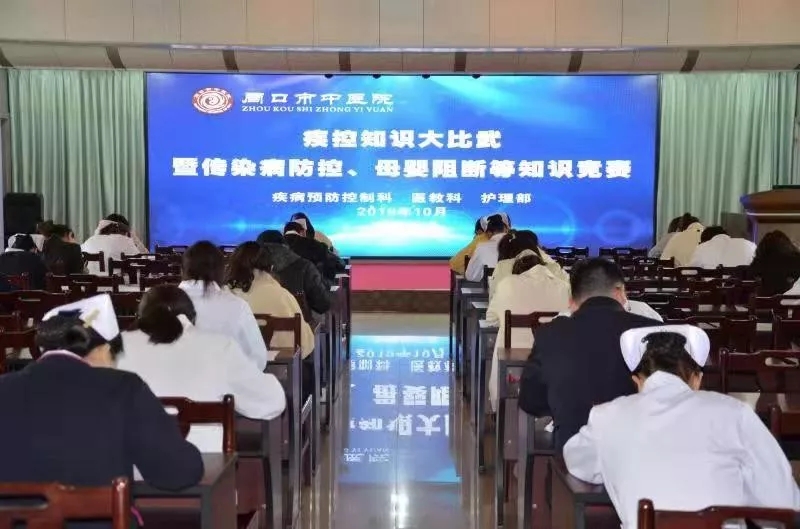 為進一步加強我院傳染病防控工作,提升全體醫護人員疾病預防控制工作業務技術能力,構筑牢固的疾病預防控制體系,根據周口市衛生健康委下發的《關于舉辦中心城區醫療機構疾控工作崗位練兵和大比武活動的通知》要求及活動進度的安排,我院于10月16日下午14:20分在六號樓六樓進行“周口市中醫院疾控知識大比武暨傳染病防控、母嬰阻斷等知識”競賽活動。本次考試由疾控科聯合醫教科、護理部共同組織。醫院領導工會主席孫俊、醫院感染管理科科長徐亞鵬、醫教科科長胡維來、護理部副主任夏愛玲等領導親臨考試現場,為參賽隊員加油。