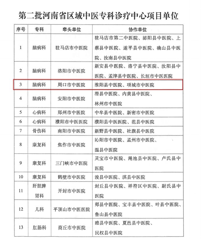 日前,根據《河南省衛生健康委關于開展第二批省級區域中醫專科診療中心申報工作的通知》要求,經各省轄市推薦、省衛生健康委形式審查、專家評審,結合區域規劃,確定了第二批河南省區域中醫專科診療中心建設項目名單。周口市中醫院腦病科成功入選河南省區域中醫??圃\療中心建設項目。