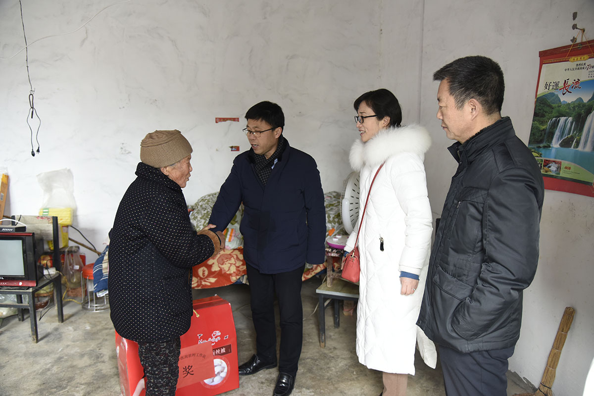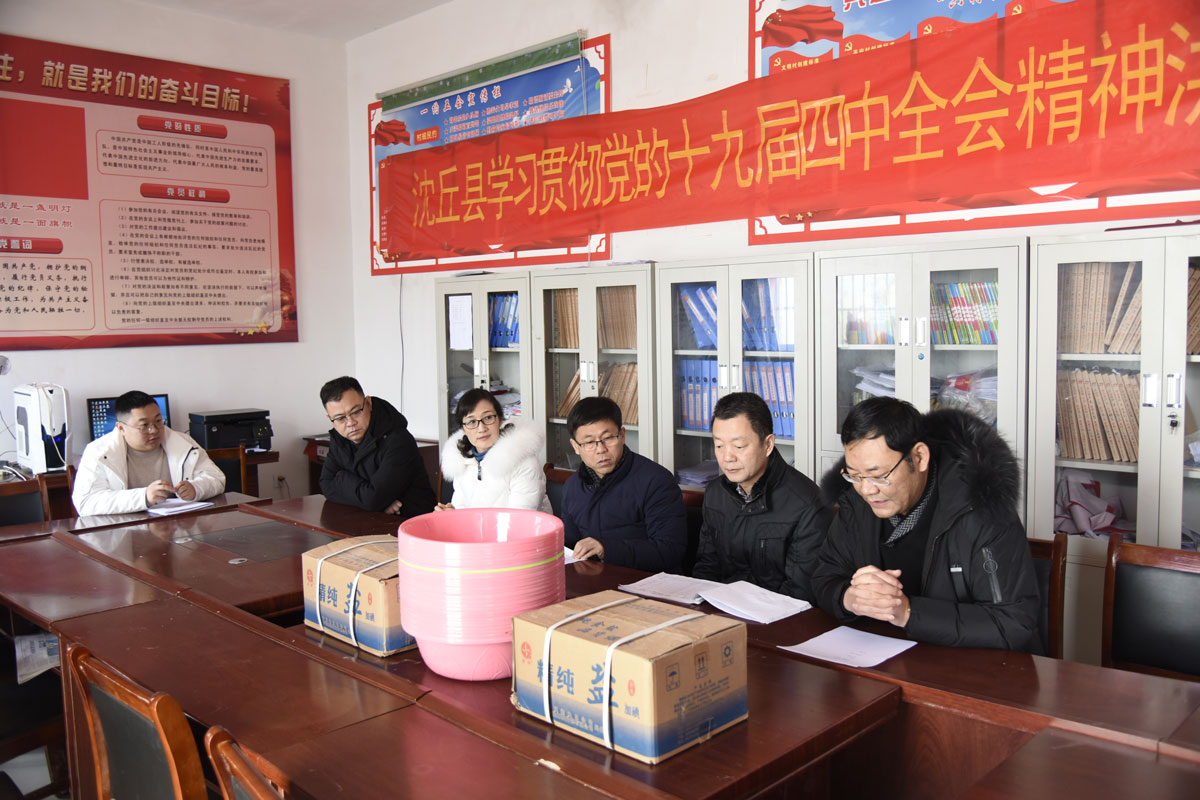 數九寒天,寒意濃濃。為學習宣傳黨的十九屆四中全會精神,深入推進實踐育人工作,為了讓困難群眾感受到政府關愛,讓寒冷的冬季變得溫馨和諧,1月17日上午,周口市中醫院副院長史衛東帶隊,黨辦主任于建玲、醫教科科長胡維來、人事科科長宋君一行冒著嚴寒到駐村幫扶單位沈丘縣洪山鎮石關村開展幫扶活動。