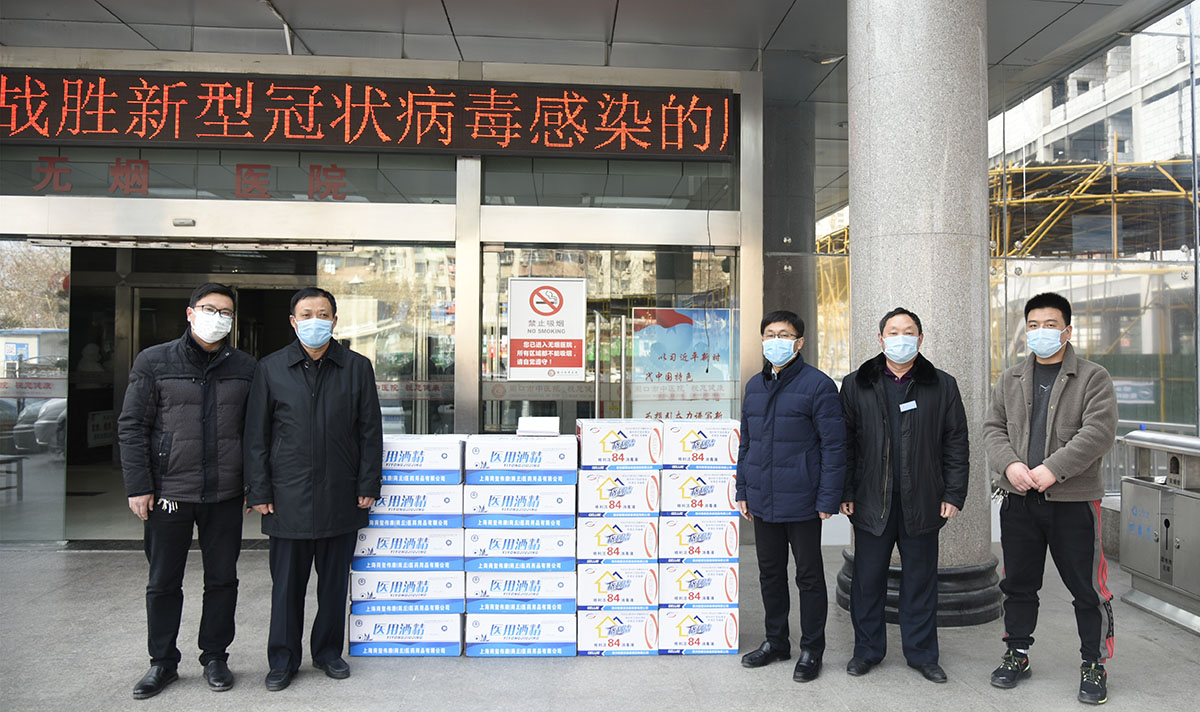 2月3日上午,周口市仁和藥業有限公司為我院捐贈75%酒精400瓶,84消毒液300瓶。