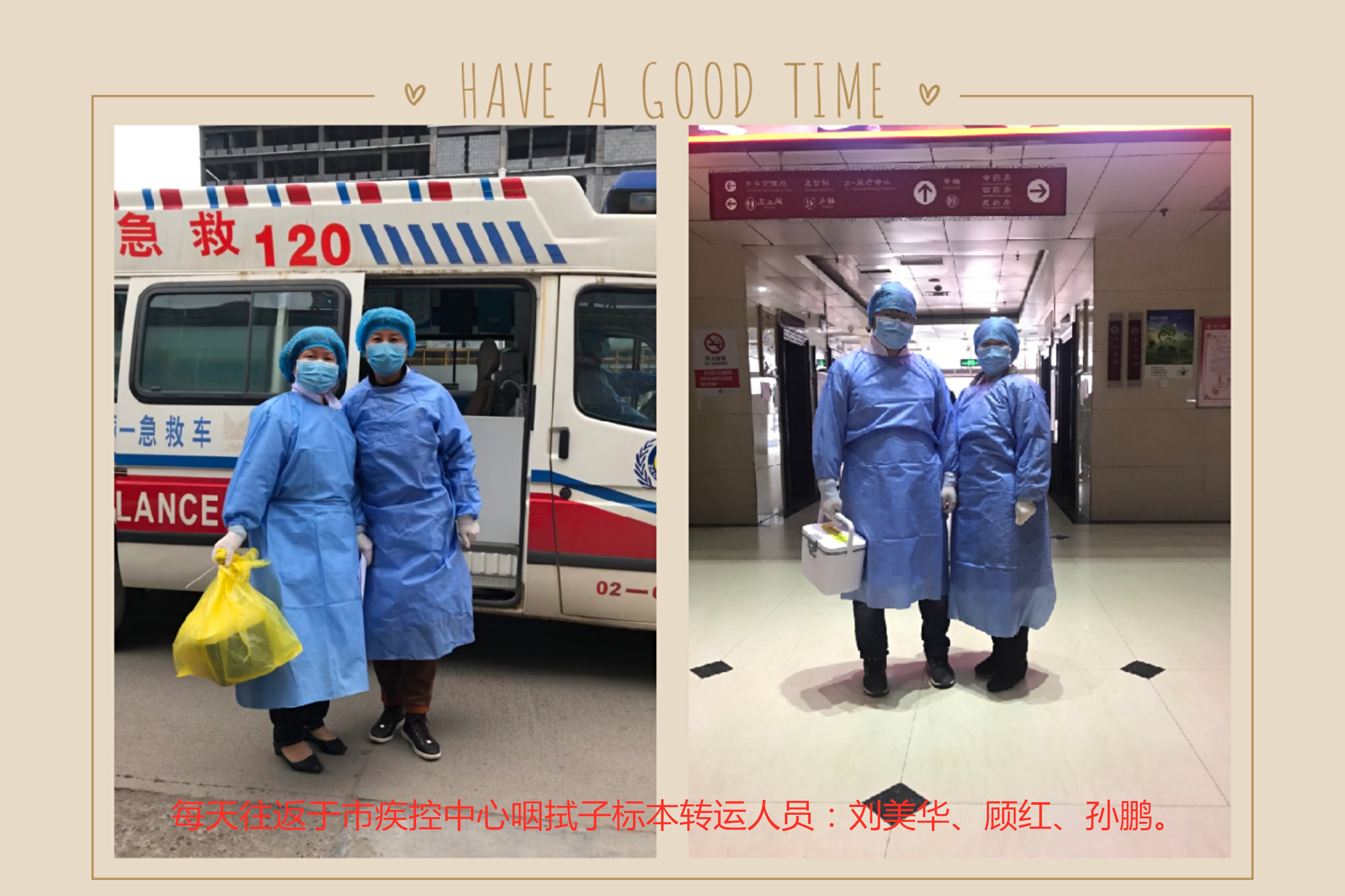 只要有疑似病人就必須由專人負(fù)責(zé)送咽拭子標(biāo)本到市疾控中心做核酸檢測(cè),接到醫(yī)院通知后檢驗(yàn)科有主任劉美華、孫鵬,輸血科顧紅主任主動(dòng)接受此項(xiàng)任務(wù),他們的工作職責(zé)就是把每一位患者的標(biāo)本盡快、安全送到市疾控中心實(shí)驗(yàn)室。不論白天晚上只要接到任務(wù)就會(huì)第一時(shí)間把標(biāo)本及時(shí)送到疾控中心。這種不分晝夜的高強(qiáng)度工作,讓他們忽略了時(shí)間概念,忘記了休息和吃飯時(shí)間。