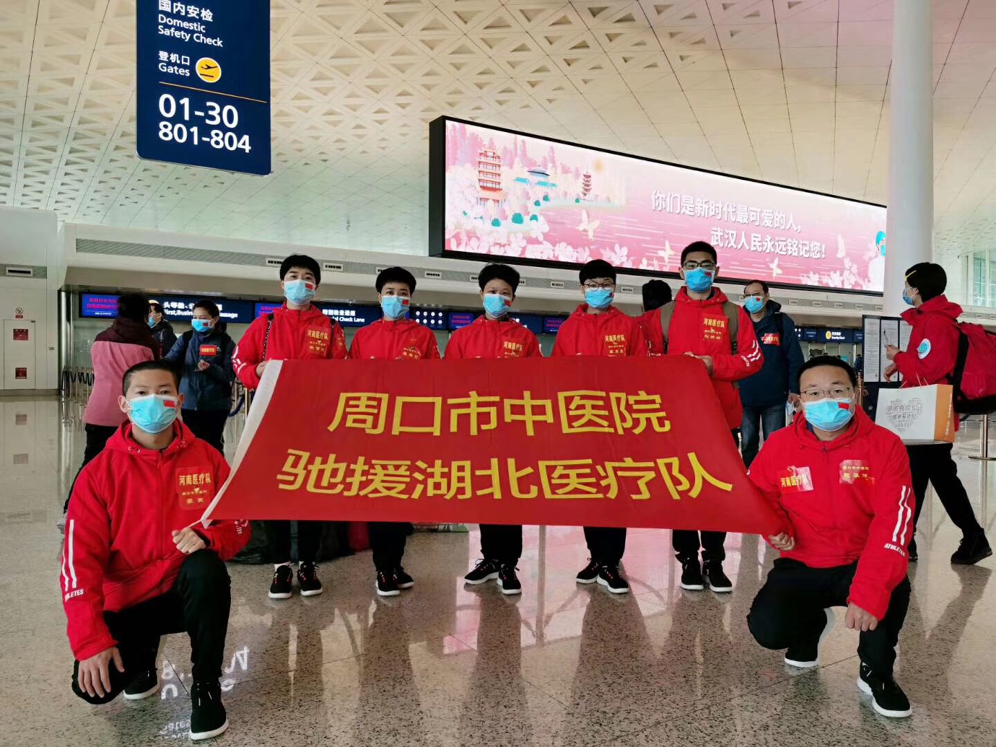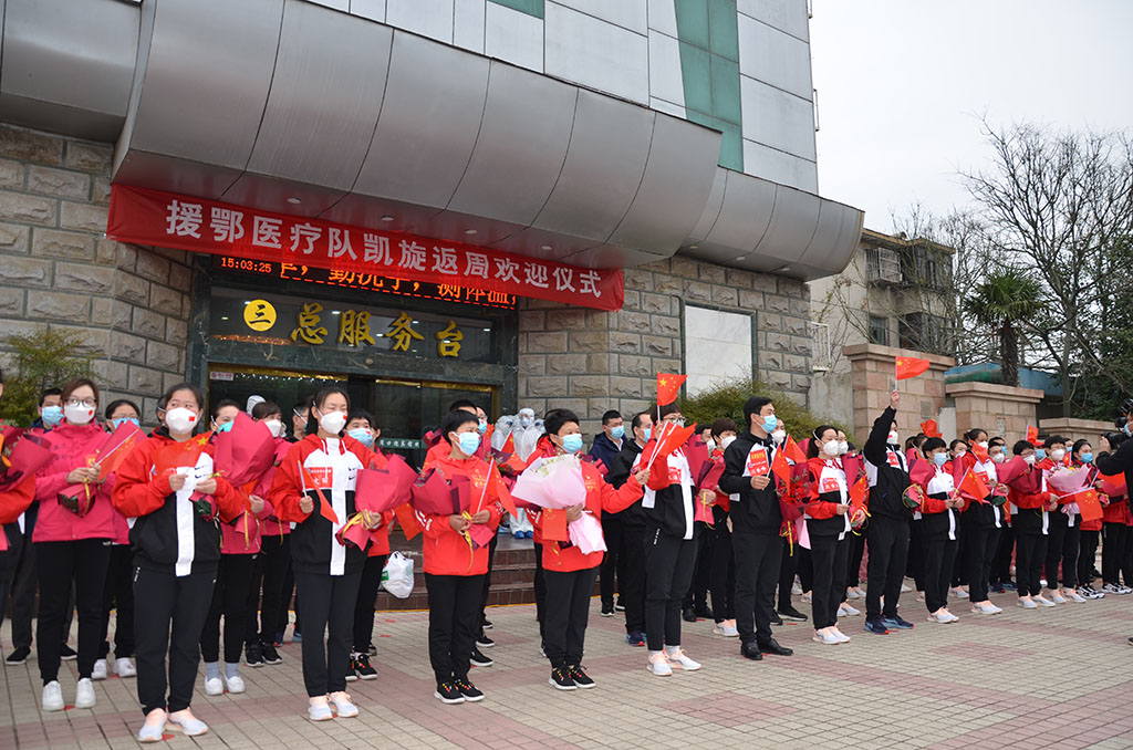 3月30日,周口市支援湖北重癥救治醫療隊71名全體成員平安順利返程。周口市市長丁福浩,周口市副市長秦勝軍,市政府秘書長孫鴻俊,市政府副秘書長唐峰,衛健委主任金玉貞,衛健委副主任劉劍鋒等到周口市迎賓館,迎接白衣戰士回家,代表市四大班子和全市人民,向他們致以最崇高的敬意和最衷心的感謝,向他們的家屬表示最誠摯的問候。市直有關部門負責人、各醫院代表列隊歡迎英雄回家。