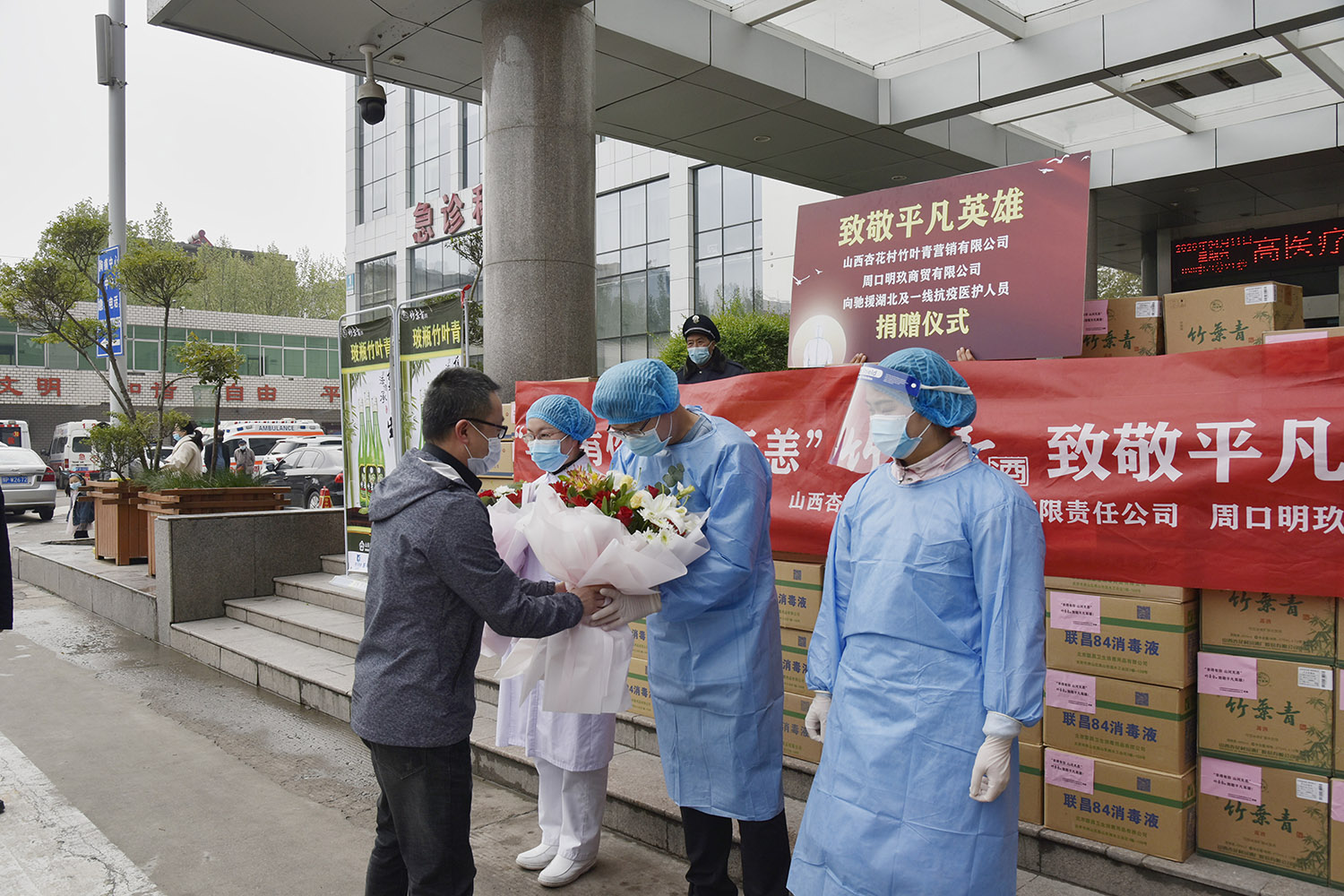 4月11日,山西杏花村竹葉青酒營銷責任有限公司河南大區、周口明玖商貿有限公司聯合為我院捐贈疫情防控所需的防護用品。我院主管負責人代表醫院接受了捐贈,并對愛心人士大力支持打贏疫情保衛戰表示衷心的感謝,并表示所有捐贈物品將用于醫護人員防控新冠肺炎疫情工作。