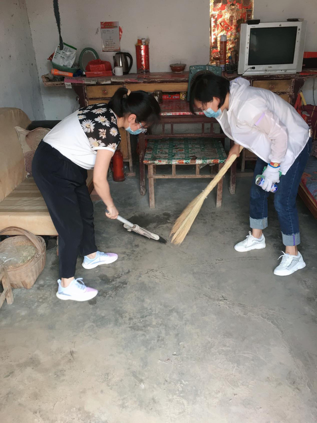 圖:與貧困戶一起進(jìn)行衛(wèi)生清理