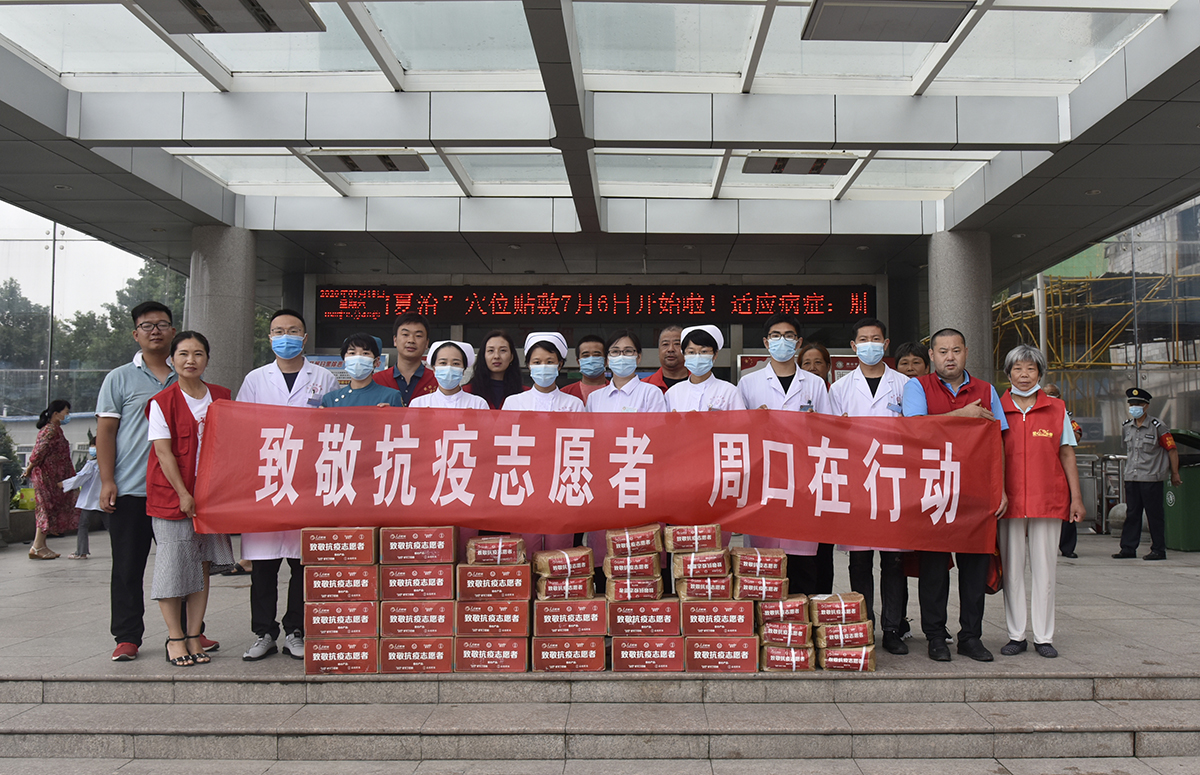 周口市社工義工聯合會、二十一世紀基金會,人民網·人民健康、西藏愛唯一營養科技有限責任公司、袁米農業科技有限公司聯合共同發起“致敬抗疫志愿者”慰問活動。7月18日上午,協會副會長劉娜一行8人對周口市中醫院七名援鄂勇士進行慰問并發放慰問品。