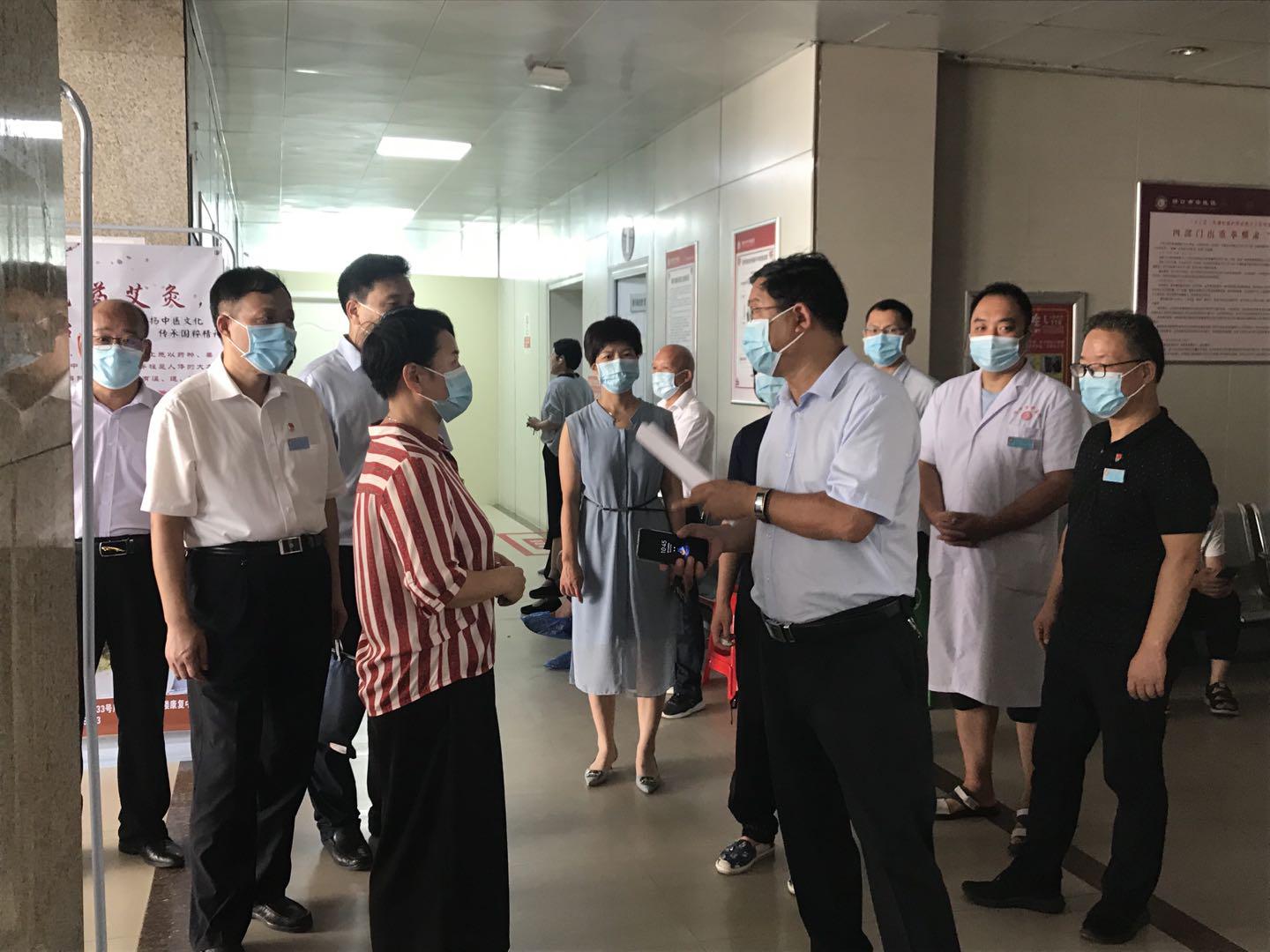 8月13日上午,周口市政府副秘書長唐峰、市衛健委副主任劉劍鋒及市創衛辦督導組專家一行蒞臨周口市中醫院,督導檢查創衛工作開展情況,周口市中醫院黨委書記劉廣明、副院長魯恒心及愛衛會、創衛辦迎檢組成員陪同檢查。