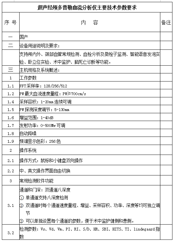 周口市中醫院采購超聲經顱多普勒血流分析儀1臺。根據采購信息,結合產品市場的情況,特邀請有資格信譽好的公司前來參加本次采購活動。
