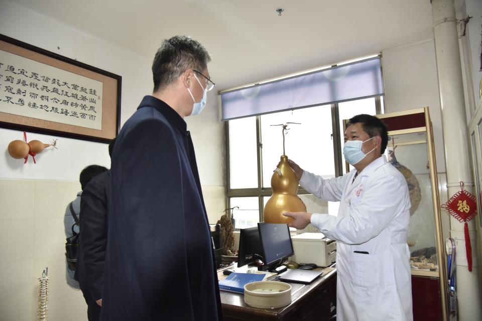 調研組先后走訪了醫院的心病病區、腫瘤科、康復中心,查看相關醫療設備,了解了人員配備、醫院運行、特色專科開展情況,趙部長對我院認真落實習近平新時代中國特色社會主義思想和黨的十九屆五中全會精神,切實把人民群眾的生命安全和身體健康放在第一位,把疫情防控工作作為當前最重要工作來抓,加強三級公立醫院管理,發揮中醫藥特色優勢,堅定服務理念,給予高度評價肯定。隨后調研組來到六樓會議室聽取了統戰工作匯報。