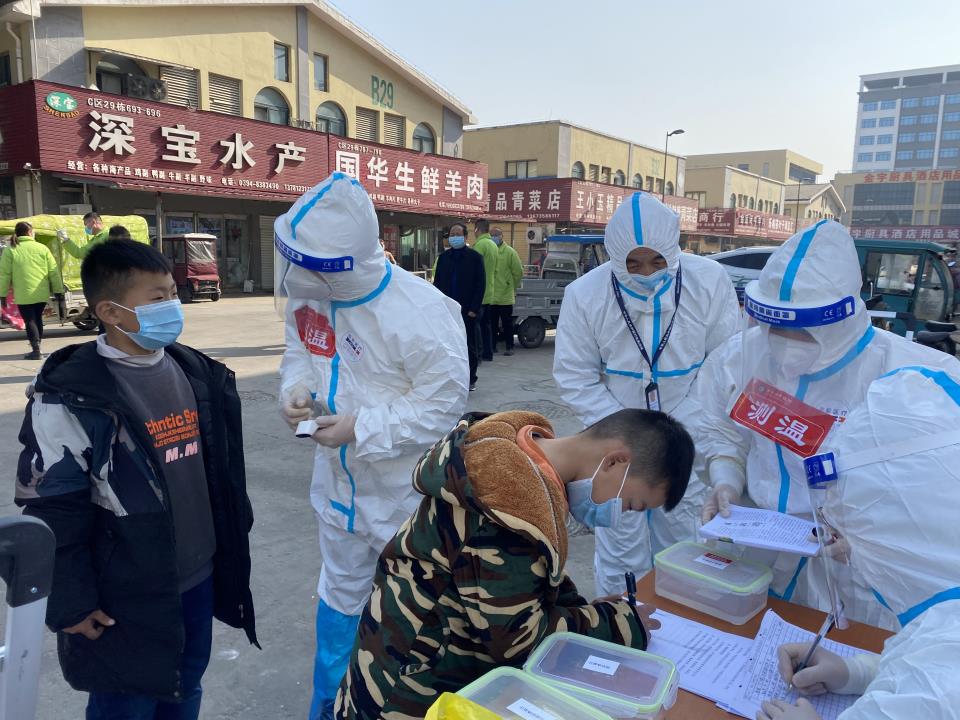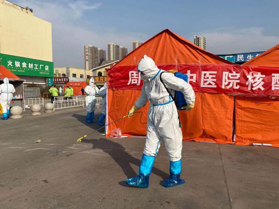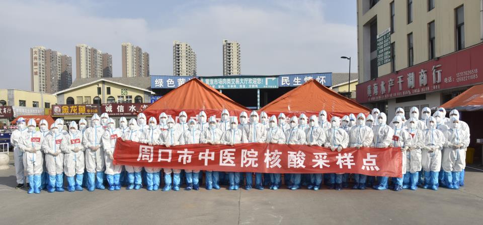 周口市中醫院按照市疫情防控指揮部統一調度,及時到達現場,拉警戒線,搭建帳篷,一米線標志,設立采樣區、登記區、緩沖區、臨時隔離區,體溫檢測點,做好市場內顧客核酸檢測。