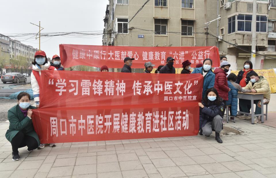 為傳播健康知識,不斷提高居民健康素養,助力健康中原。3月10日上午,周口市中醫院院團委、紡電社區衛生服務中心十余人,在富民路七一路紡城社區開展“健康中原行 大醫獻愛心健康教育‘六進’公益行”“學習雷鋒精神 傳承中醫文化”活動。