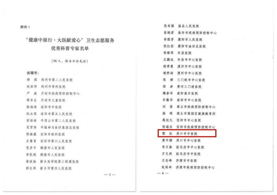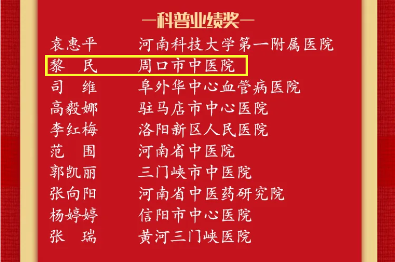【喜訊】周口市中醫院黎民醫師榮獲兩項省級榮譽