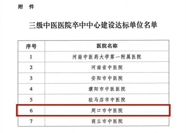 喜訊!周口市中醫(yī)院確定為三級中醫(yī)醫(yī)院卒中中心建設達標單位