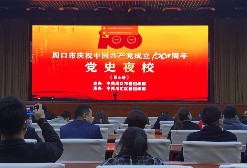 4月7日晚7點,周口市中醫院組織收聽收看由周口市委組織部主辦、川匯區委組織部承辦的周口市慶祝中國共產黨成立100周年“黨史夜校”第6期專題講座。我院由院黨委委員、工會主席孫俊同志帶隊,各黨支部書記及相關職能科室人員共同前往市行政中心分會場進行收看。