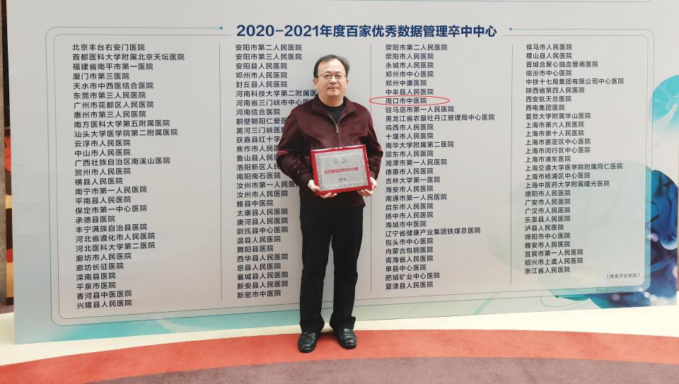 為規范和持續改進我國神經系統疾病醫療質量,4月10日,中國卒中學會醫療質量管理與促進分會第六屆學術年會暨中國卒中中心聯盟第六屆高峰論壇在北京召開,周口市中醫院卒中中心榮獲“優秀數據管理卒中中心”的榮譽稱號。