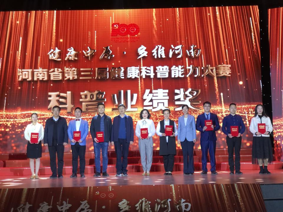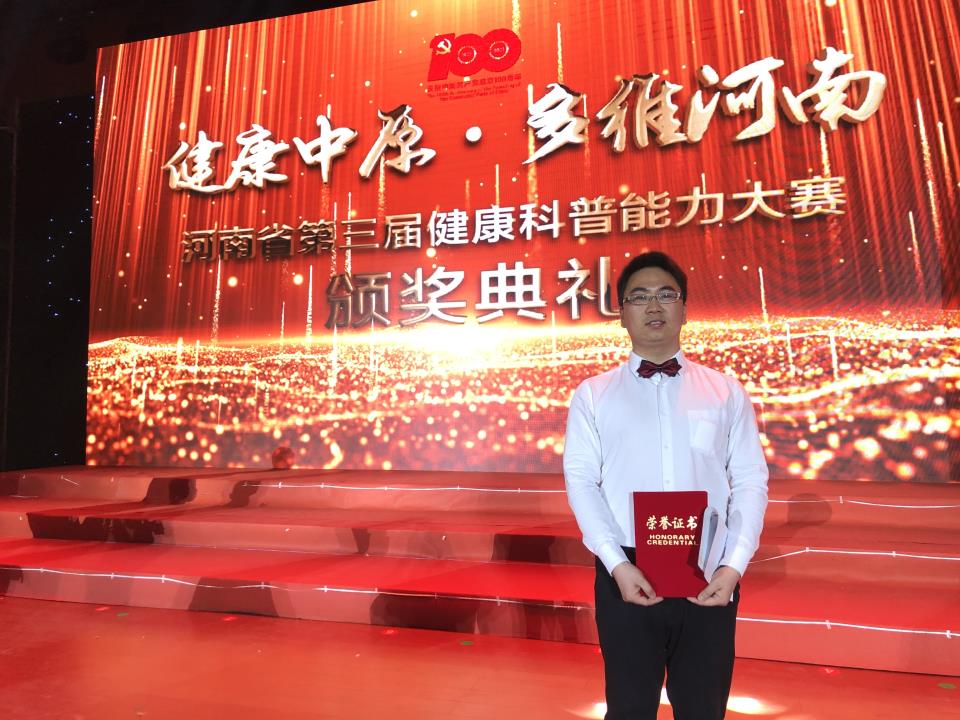 4月10日由河南省衛生健康委、省科技廳、省總工會、省科協、河南日報報業集團主辦,河南省疾病預防控制中心、大河健康報社承辦的“健康中原·多維河南--河南省健康科普能力大賽”頒獎典禮在鄭州圓滿落幕。周口市中醫院腦二病區主治醫師黎民榮獲科普業績獎。