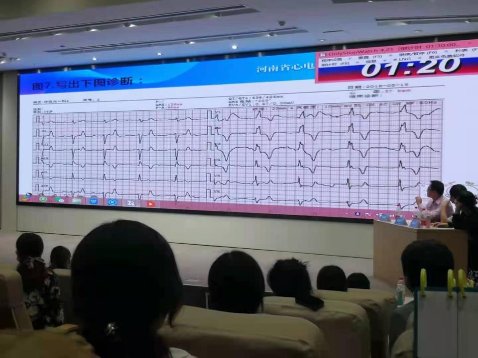 此次大賽由河南省心電學會護理分會舉辦,來自河南省人民醫院、鄭大一附院、阜外華中心血管醫院等30家醫院的臨床一線護理人員參賽。比賽內容:心電圖基礎理論知識、常見異常心電圖及危急心電圖識別。大賽邀請了河南省心電學會會長徐金義主任、河南省胸科醫院心肺功能科吳志宏主任、鄭大一附院心內科王隨峰醫師3位知名心臟電生理學專家作為評委進行現場點評。