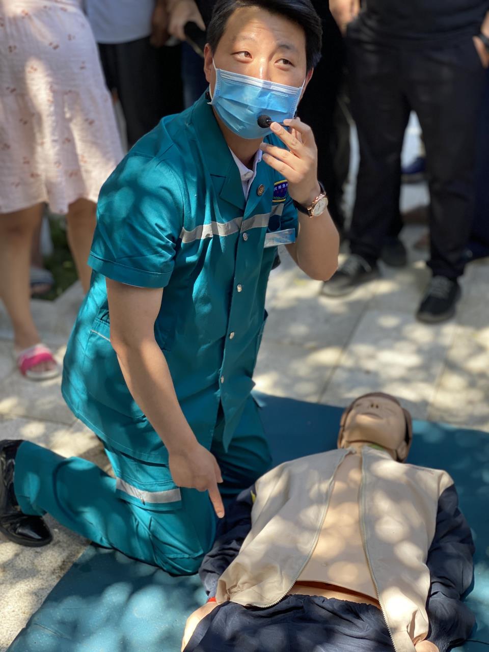 隨后,急診科主治醫師楊鐙魁作為心肺復蘇專家現場演示了心肺復蘇的實際操作,詳細分解心肺復蘇主要步驟,手把手指導進行練習。除了普及心肺復蘇知識和實操演練,胸痛中心專家還給大家講解心臟除顫的使用條件、方法和注意事項并現場模擬操作,并對大家的疑惑一一解答,社區民眾紛紛表示多掌握了一項搶救技能,受益匪淺。