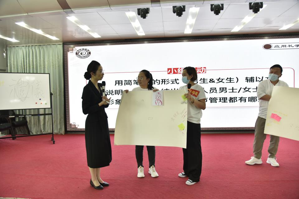 此次培訓特邀應用禮學專家徐燦老師授課,現場進行分組教學,徐老師從醫院基本禮儀規范的角度,深入淺出地闡述了窗口科室應遵循的職業道德和服務理念,著重對形象禮儀、服務禮儀、溝通禮儀等做了細致的講解并進行現場互動,具有很強的實用性。理論知識學習結束并進行現場理論考核。下午禮儀形體訓練,老師將日常使用頻率較高的站姿、坐姿、走姿、蹲姿、手勢指引等進行了重點演示,現場職工認真練習,相互糾正,共同提高。整個培訓突出實踐,強調規范,講解生動,使大家受益匪淺。