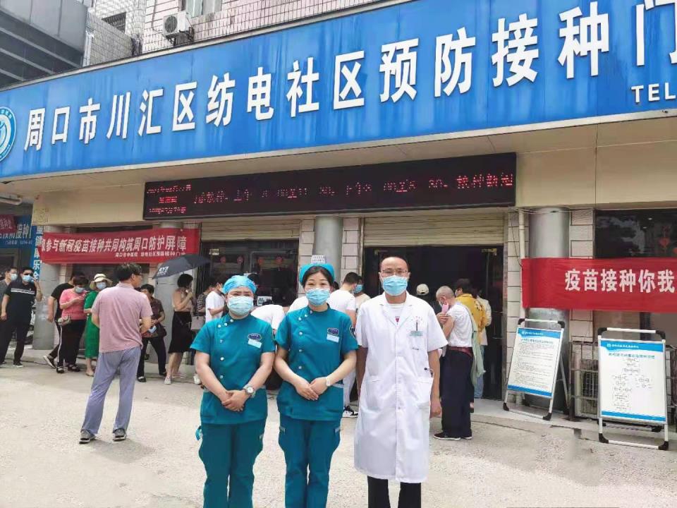5月26日那天下午,司機賀凱正在進行保障工作,他十歲的孩子生病發燒一個人在醫院輸液,拜托同事幫忙照顧,他仍然堅持在疫苗接種點;6月8日中午,科室臨時又接到保障任務,護士張智慧在休息日主動要求進行加班。她說:“我一個人沒有成家,我去,我現在立即乘搭包車,保證兩點半趕到!”中午她頂著炎熱,立即從沈丘老家趕到周口。6月9日晚上,醫生胡旭東在疫苗接種點忙碌到十一點,第二天早上7點多又立即投入到科室工作中去......