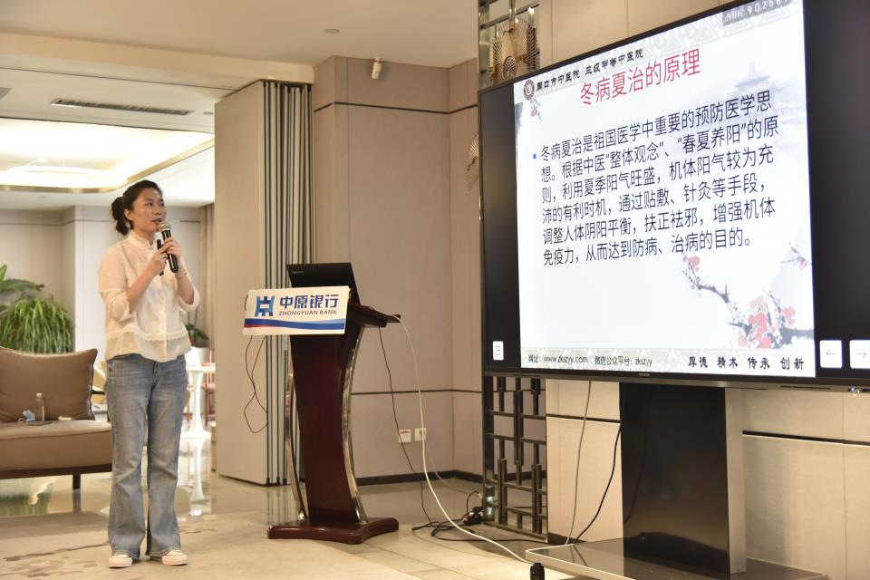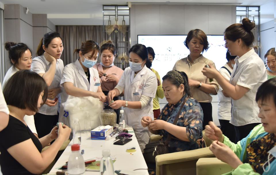 活動現場,坐滿了中原銀行的工作人員及前來辦理業務的居民,康復中心副主任劉俊宏,張珂暢老師分別用生動簡潔的語言以《淺談冬病夏治》和《“艾”健康“艾美麗”》的健康科普知識講座拉開序幕。同時,為大家提供了我院自制的中藥香囊材料,現場指導縫制香囊。