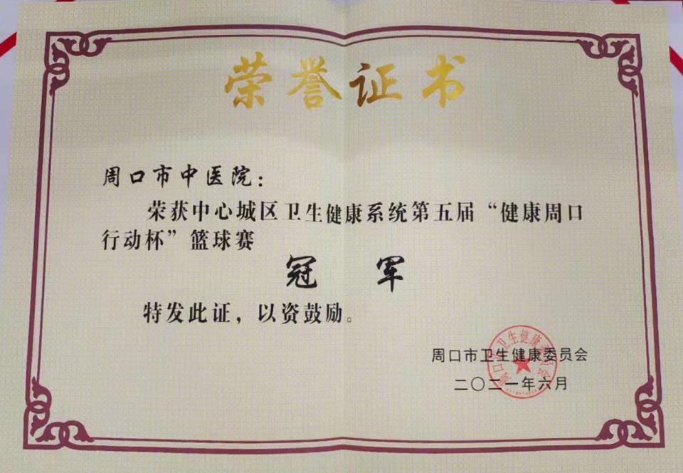 周口市中醫院榮獲第五屆”健康周口行動杯“籃球賽冠軍