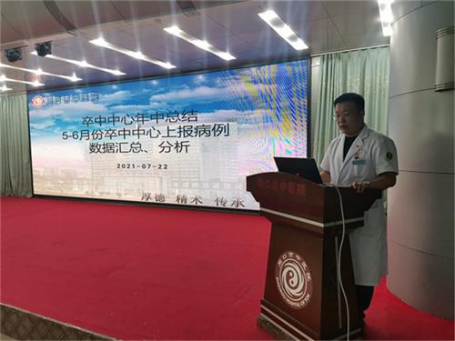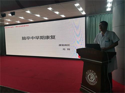在卒中中心質(zhì)控控制工作會議及2021年中工作總結(jié)會上,卒中中心秘書、神經(jīng)外科主任助理王濤杰匯作卒中中心上半年度工作報告,2021年上半年度,卒中中心在全院各臨床科室的共同努力下,卒中中心整體形勢持續(xù)保持向好發(fā)展,大部分上報數(shù)據(jù)優(yōu)于同級平均水平。康復(fù)中心主任助理肖釋為大家?guī)矸窒韴蟾?/span>——《腦卒中早期康復(fù)》,多角度、多方位闡述了康復(fù)醫(yī)學(xué)在卒中患者康復(fù)方面的作用,促進了康復(fù)醫(yī)學(xué)更廣泛地參與卒中患者健康管理。