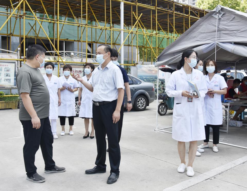 8月4日下午,周口市衛健委副主任王文靈、醫政科科長趙艷玲,市中心醫院專家毛國璋、段雪亞、盧本亮一行到周口市中醫院督導疫情防控工作。醫院黨委委員、工會主席孫俊及相關科室負責人陪同督導檢查。
