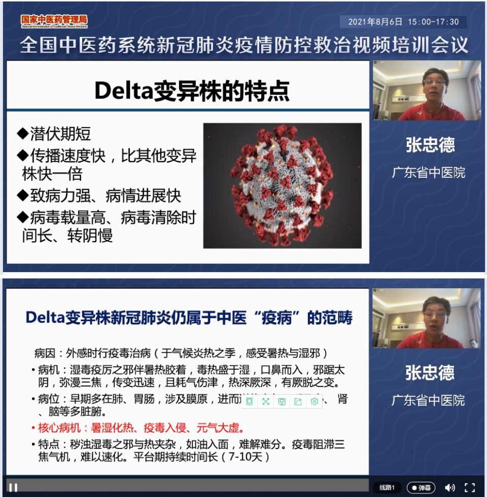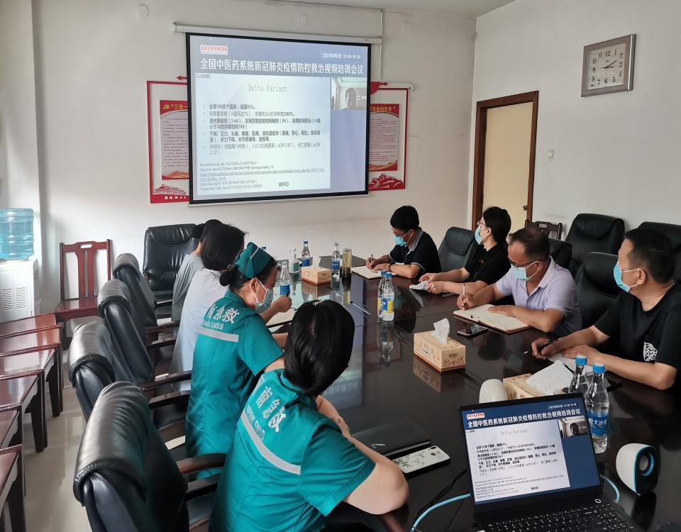 在全國中醫藥系統新冠肺炎疫情防控救治視頻培訓會議上,首都醫科大學附屬北京地壇醫院副院長蔣榮猛就中醫醫療機構院感防控工作進行培訓; 國家中醫藥管理局應對新冠疫情高級專家組副組長、廣東省中醫院副院長張忠德對Delta變異病毒新冠肺炎中醫醫療救治進行培訓,就新型冠狀病毒肺炎( Delta株)中醫藥治療專家共識進行解讀。通過這次培訓,促進我院感染防控工作進一步夯實,指導中醫藥在我市新冠肺炎預防、患者救治等方面繼續發揮重要作用。