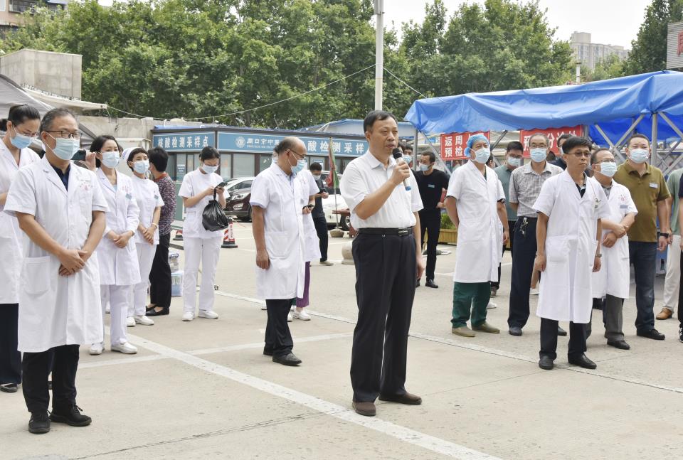 同心抗疫,共克時艱。按照省、市衛健委統一部署,8月16日早上,周口市中醫院支援商丘全員核酸檢測醫療隊出征。醫院優中選優,選派30名醫務人員奔赴商丘,支援商丘全員核酸檢測工作。周口市中醫院黨委書記劉廣明、副院長魯恒心、副院長史衛東、工會主席孫俊,相關臨床科室主任、護士長及行政科室負責人出席儀式。副院長史衛東主持儀式。