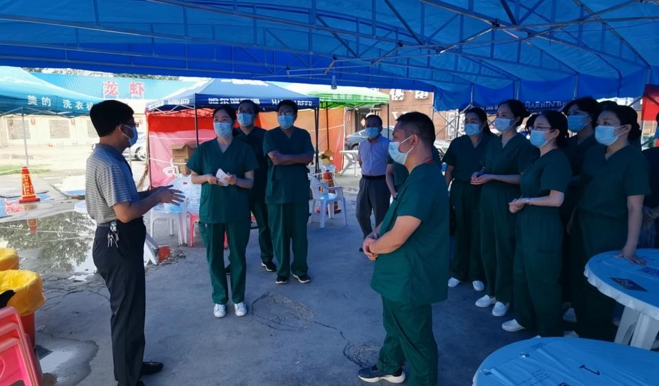 醫院領導更是忙碌,中午培訓一結束,劉書記、院班子其他成員、醫務科、護理部、疾控科科長中午冒著酷暑到核酸檢測點清理場地、搭建遮陽棚、協調信息采集技術人員以及志愿者工作,確保下午3點順利開展核酸采集工作。正值炎夏,中醫院領導奔波在兩個采集點之間,協調關系、維持秩序,反復的叮囑:“有什么需求就提出來,一旦出現身體不舒服的情況要趕緊說,早上涼快時候我們兩小時一輪換,中午較熱的時候就一小時一輪換,保證大家的精力和體力”,便于更好地開展工作,我們要做到每個人都參與,但又不能讓每個人過度疲勞”。擔心醫護人員不能及時吃上飯,醫院還送去了方便面、面包、火腿腸等慰問品。