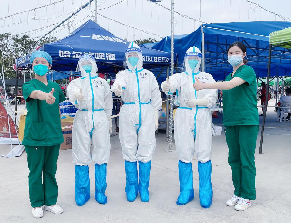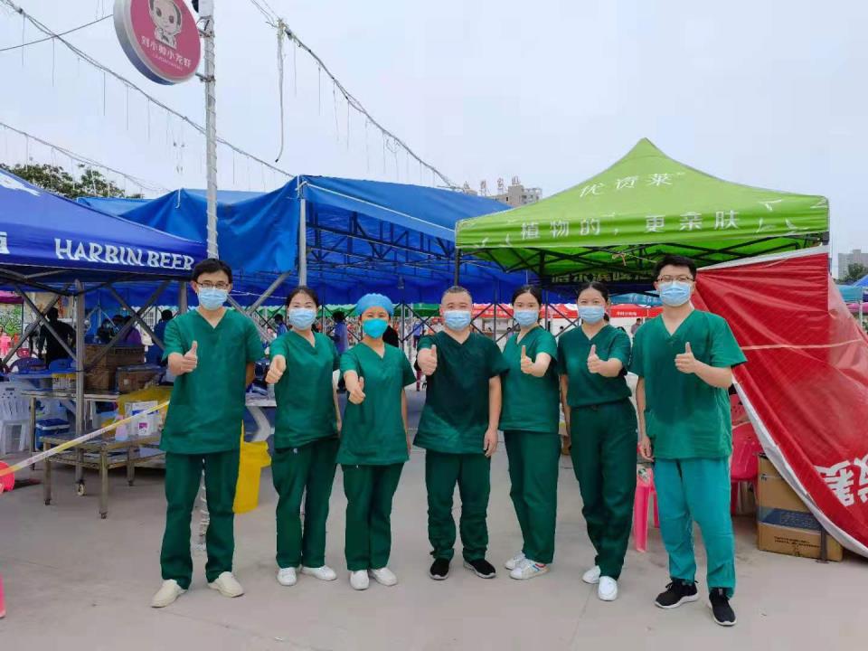 看著護目鏡下一張張被汗水打濕的面孔,前來檢測的市民們既感動又心疼。“謝謝,你們太辛苦了”;“沒事,你可以慢些的,我不急”。聲聲溫暖的話語化解了夏日的暑熱,在醫護人員的心中撐起了一片蔭涼。大家這幾天都說醫護人員辛苦,其實社區的工作人員也非常辛苦,烈日下維持秩序,定時為我們送上可口的飯菜;大學生志愿者搬運物質;還有愛心企業、愛心個人送來的慰問品;還有電信的信息采集技術人員……所有人都在為阻擊疫情做出自己的努力,我們共同的目標都是能夠盡可能規范流程,讓大家在最快的時間內完成檢測。在本次疫情中,不論市民、醫務人員還是社區服務人員、志愿者等,我覺得我們的心都是連在一起的。我們的每一分付出都很值得。我們不是獨自在戰斗,我們有強大的凝聚力,打贏這場仗,我們有信心!