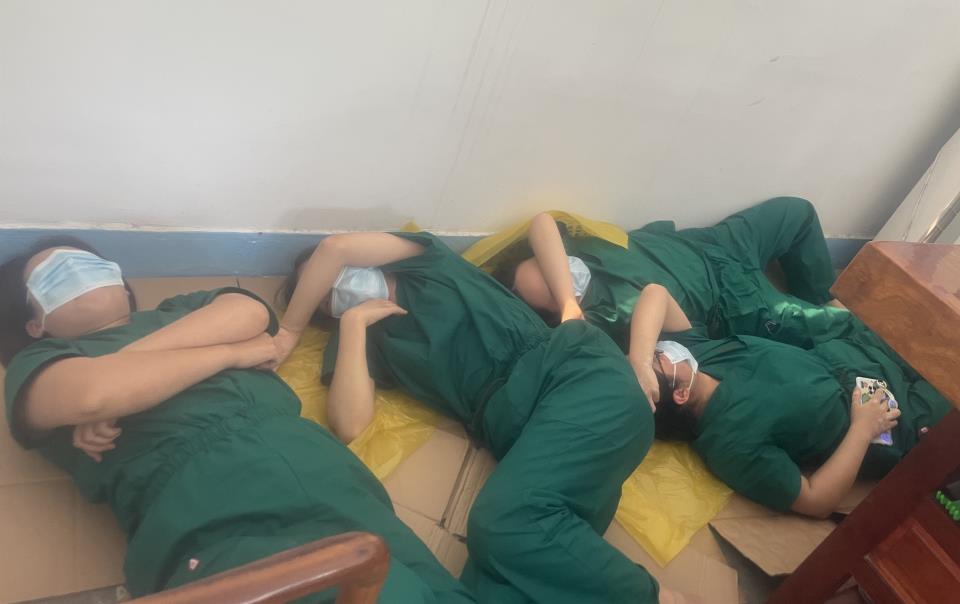 烈日下,白色的防護服顯得特別耀眼,露天廣場上,搭起巨大的遮陽棚,棚里整齊擺放了十幾張桌椅,醫用物資、采樣器械、手消液……我們的醫護人員正用汗水和堅持,為阻斷疫情傳播盡著最大的努力。20人分為五組,從早7點到晚10點輪班更替,共同分擔掃碼采集信息、采樣工作。幾天以來,沒有一位隊員申請提早換崗,每個人都在堅守。“沒關系,我不累,你再歇會兒”,每到換崗時,大家聽到最多的就是這句讓人感動的話。在這里讓我感受到了不論是醫生、護士、科主任、科長、后勤人員,沒有職位高低,大家都是那么的精誠團結、無私的奉獻??吹酱蠹夷樕喜煌A飨碌暮顾⒖谡至粝碌睦蘸?、汗水浸透的隔離衣,當然還有反復暖干汗水后衣服上留下的“白色地圖”,絕對不會被嘲笑,因為此時它代表著無尚的榮耀。實在累了就把裝物資的紙箱子做成‘床墊’,大家輪換著躺一會兒、歇一歇。還有檢驗科24小時不停的化驗,深夜還在忙碌消殺的后勤人員。當我疲憊時,想想這些感動的瞬間,就再次給了我無窮的動力。