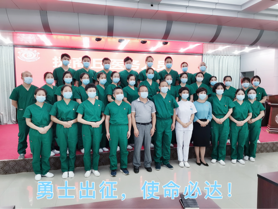 援商醫療隊出征前,感控科宋俊娥老師再次進行感控知識培訓,現場演示防護用品穿脫流程,交代注意事項。醫院黨委委員、工會主席孫俊帶領援商醫療隊出征,他對援商丘醫療隊各項工作進行詳細安排部署。醫院領導和同事為我們送行,反復叮嚀“平平安安去,健健康康回”,心中萬分感動。