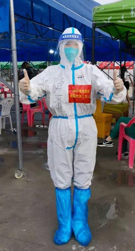 剛結束川匯區全員核酸采集工作,浮腫的雙腿還沒有消腫,被鞋子擠壓變紫的腳趾還沒有恢復,又接到支援商丘的通知,有確診病例,高風險地區,高強度的工作量等等……但作為我們醫院核酸采集點的隊長,我有了一定的工作經驗,義無反顧,主動請纓,又踏上了支援商丘市全員核酸檢測的征程;看到醫院為我們準備的生活用品、全院職工為我們送行,甚是感動。