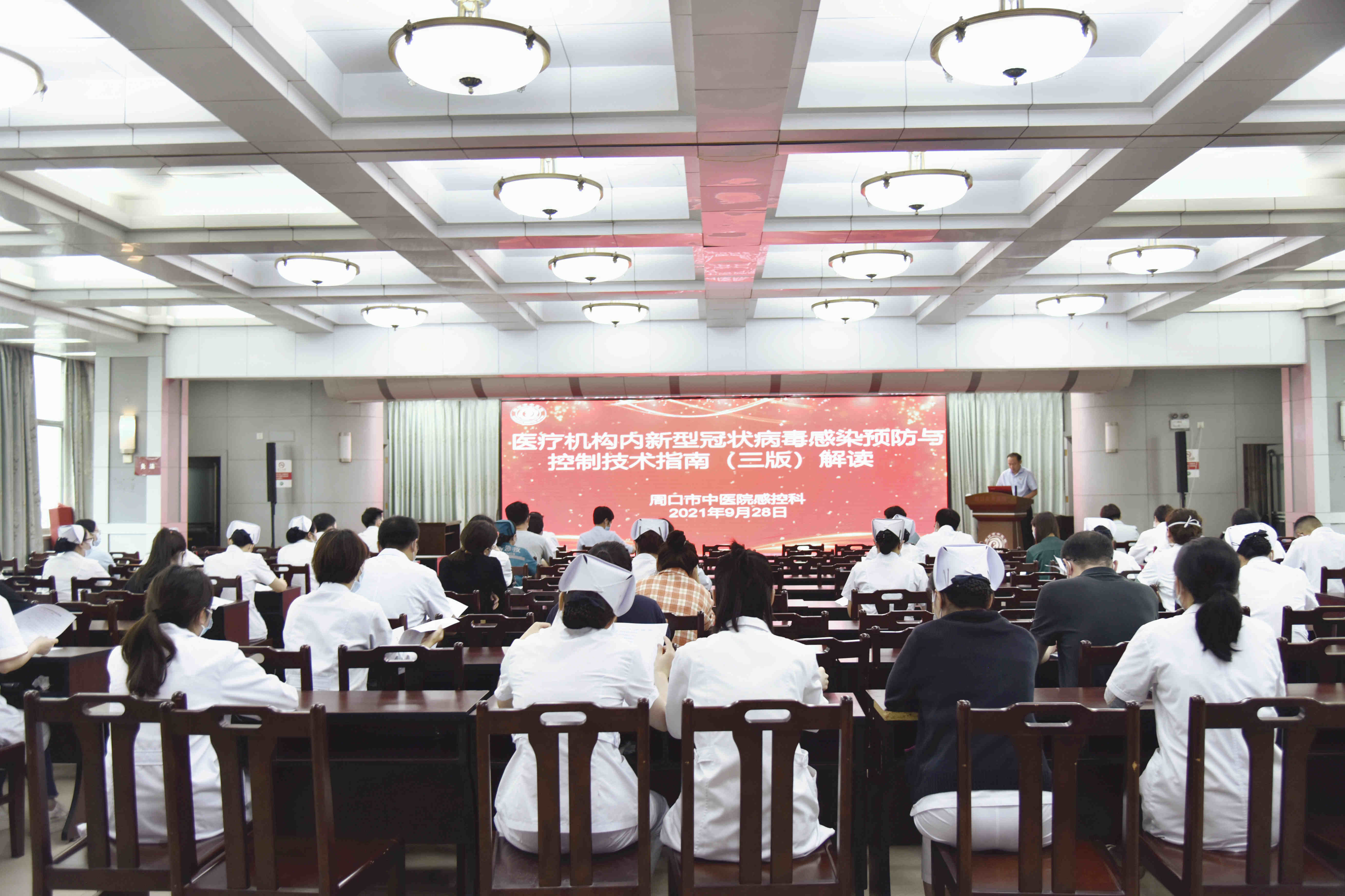 為進一步做好新型冠狀病毒感染的預防和控制工作,積極應對疫情防控形勢的新變化,最大限度降低感染風險,確保醫療安全,9月28日下午,周口市中醫院感控科組織開展了《醫療機構內新型冠狀病毒預防和控制技術指南(第三版)》培訓會議。醫院黨委委員,工會主席孫俊參會,各臨床、醫技科室感控醫生、護士90余人參加了會議。本次會議由工會主席孫俊主持,感控科徐亞鵬主任進行授課。