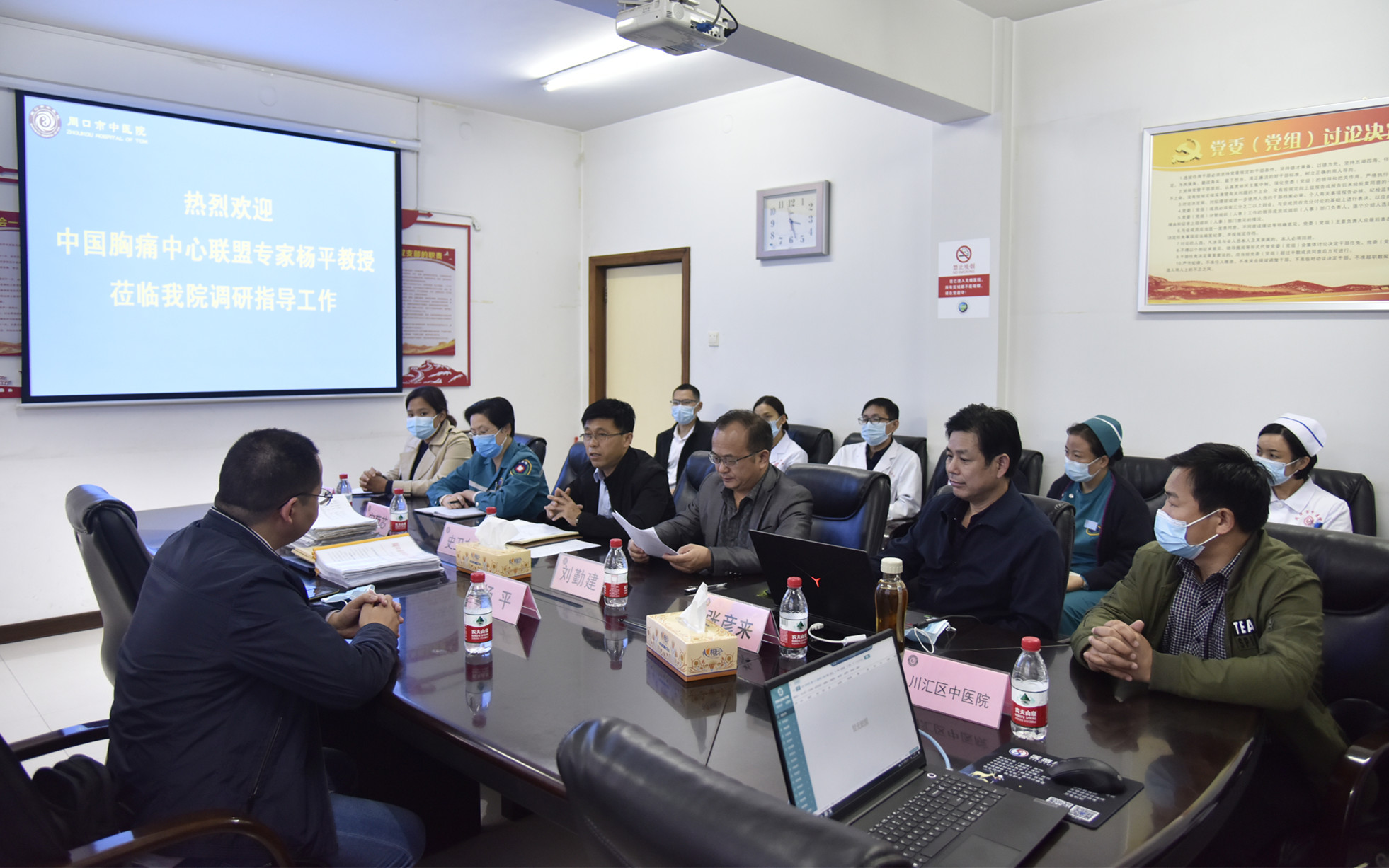 為進一步促進胸痛中心發(fā)展,提高胸痛中心建設(shè)水平,10月9日,在國家胸痛中心聯(lián)盟統(tǒng)一部署下,河南省胸痛中心聯(lián)盟評審專家楊平教授蒞臨我院指導(dǎo)胸痛中心工作。周口市中醫(yī)院黨委委員、副院長史衛(wèi)東出席預(yù)檢匯報會并致辭,胸痛中心技術(shù)總監(jiān)、心病病區(qū)主任張彥來從醫(yī)院基本概況、胸痛中心組織架構(gòu)、胸痛中心人才設(shè)備引進及發(fā)展規(guī)劃、胸痛中心建設(shè)成果等四個方面進行工作匯報,會議由醫(yī)務(wù)科科長、中心辦主任、重癥醫(yī)學(xué)科主任劉勤建主持。胸痛中心核心相關(guān)科室主任、護士長、數(shù)據(jù)員及網(wǎng)絡(luò)醫(yī)院代表參加了預(yù)檢匯報會。