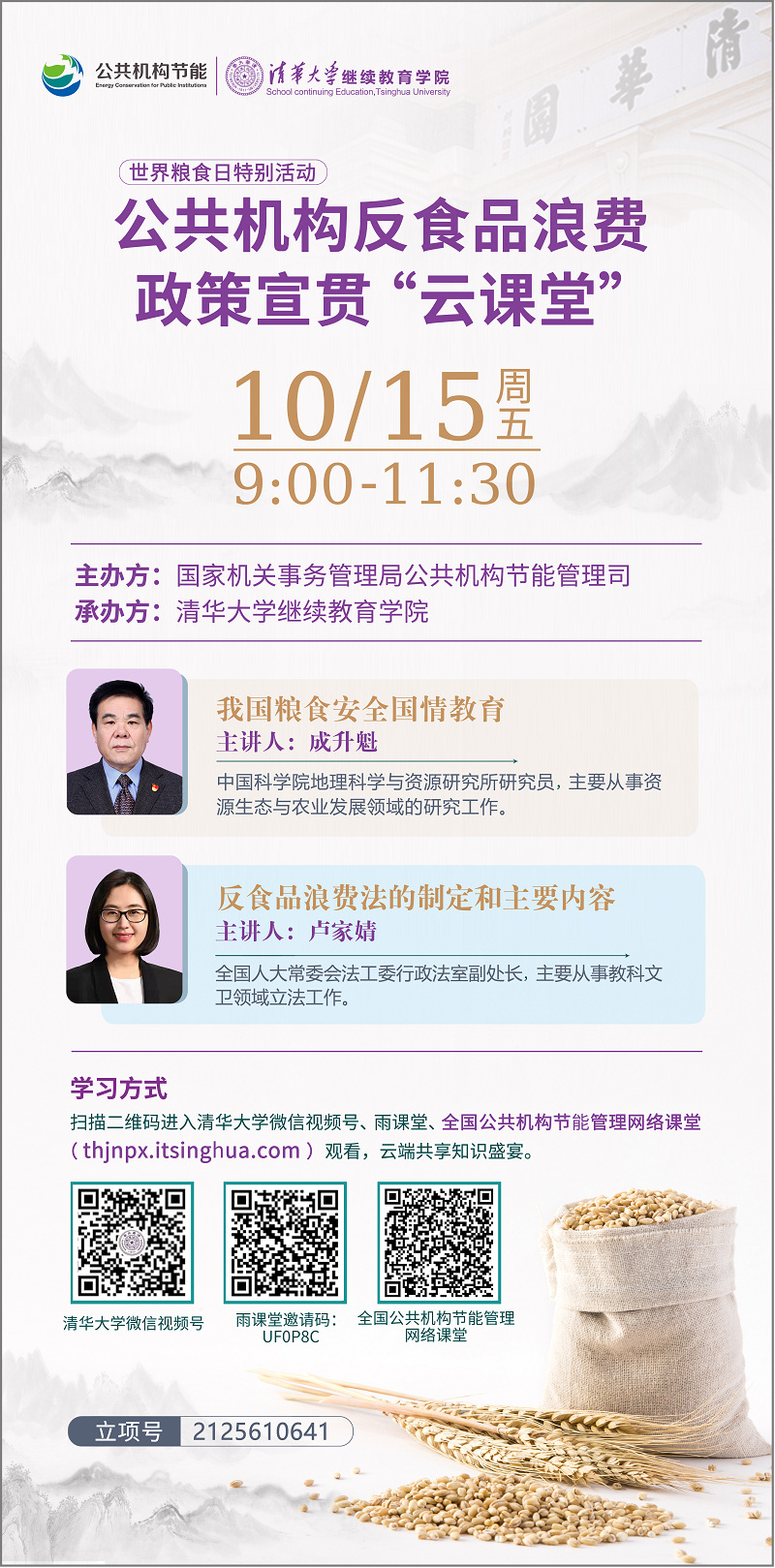 (一)課程一:我國糧食安全國情教育,由中國科學院地理科學與資源研究所成升魁研究員授課。